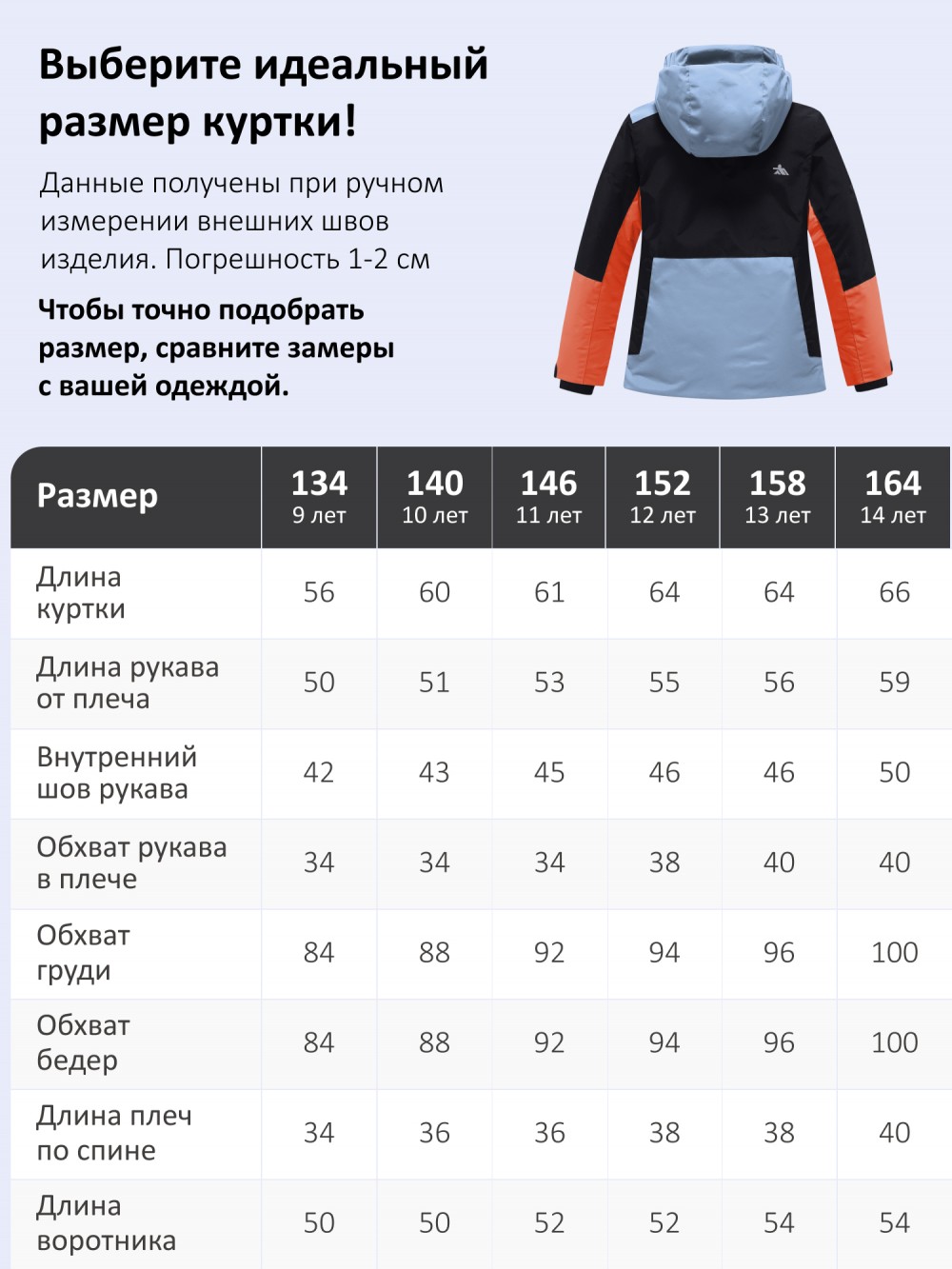 • A Длина курткиИзмеряется от верхней точки плеча до нижнего края изделия.