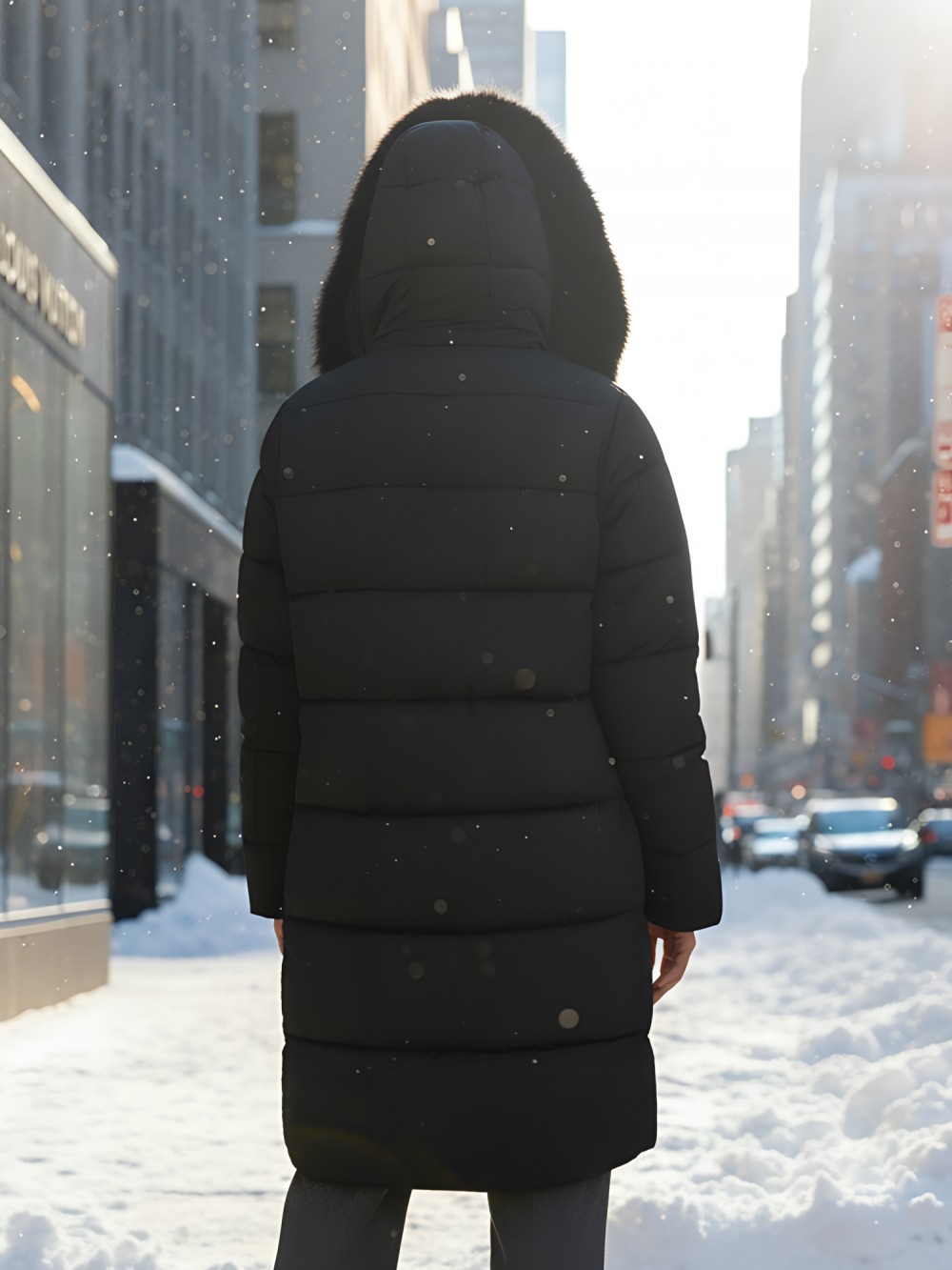 Надёжно защищает от холода, ветра и осадков. Идеален для зимней погоды, не требует головного убора.